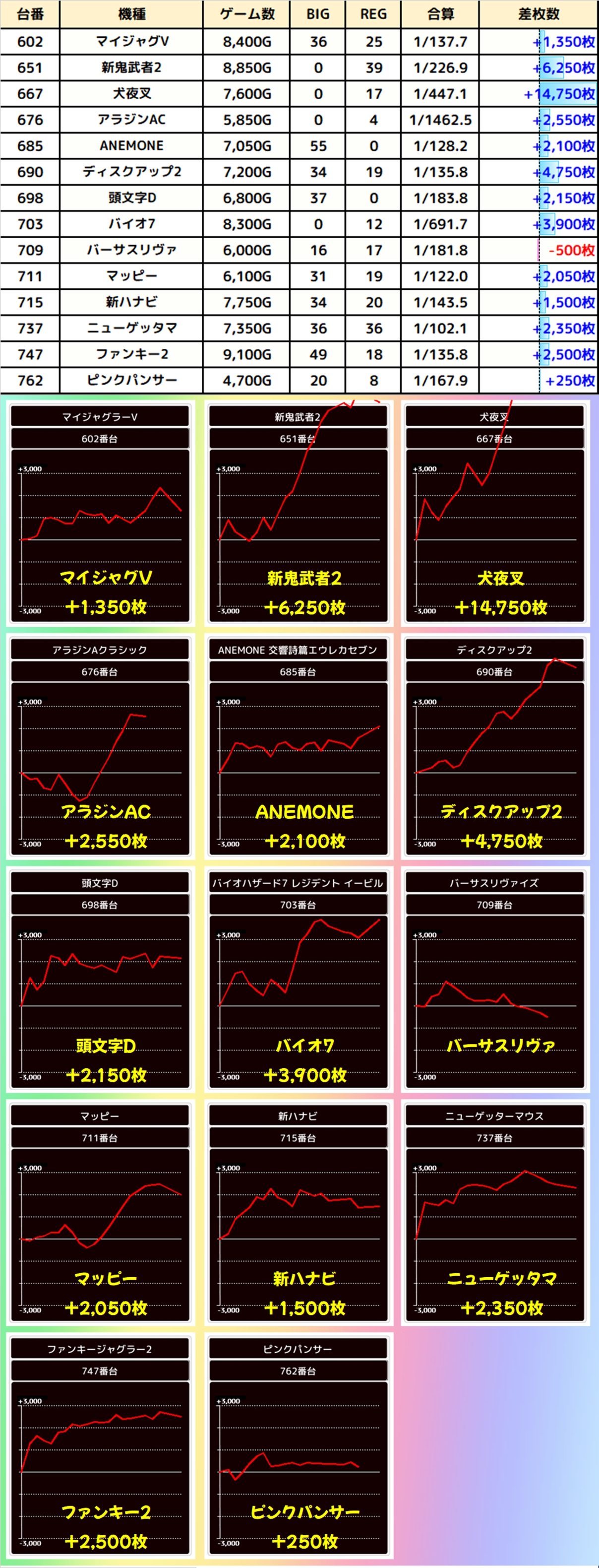 上記の各まとめに入ってこなかった差枚2千枚以上・差枚1千枚以上の良台をドド~~ンとお届け!