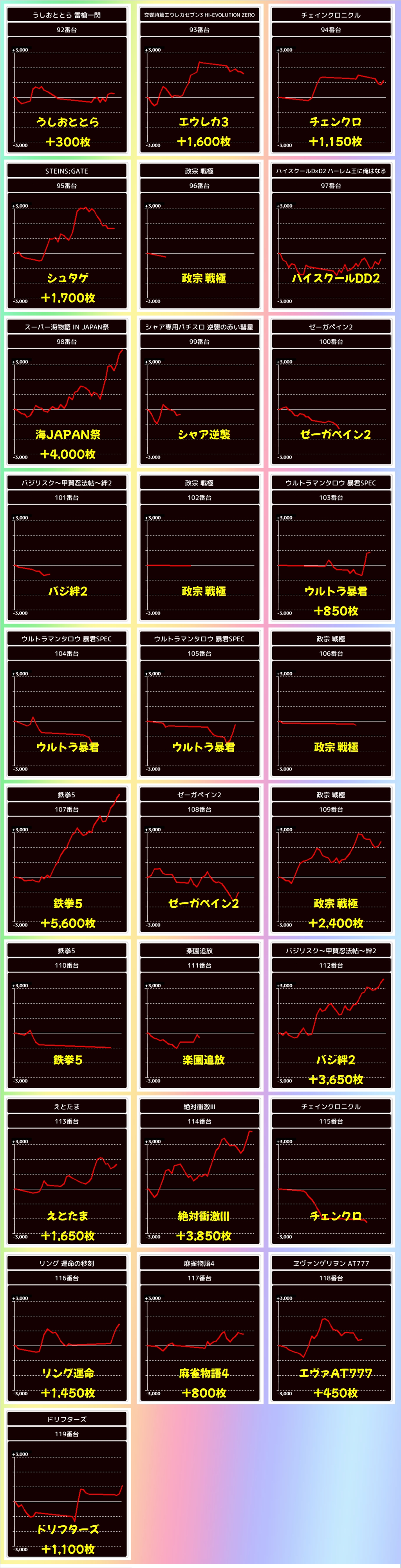バラエティコーナーは配置変更もあり、台数自体も減ってしまいました。今回は2箇所の並びがありましたが、少々物足りない結果に。しかし、この並び箇所はしっかりプラスです。