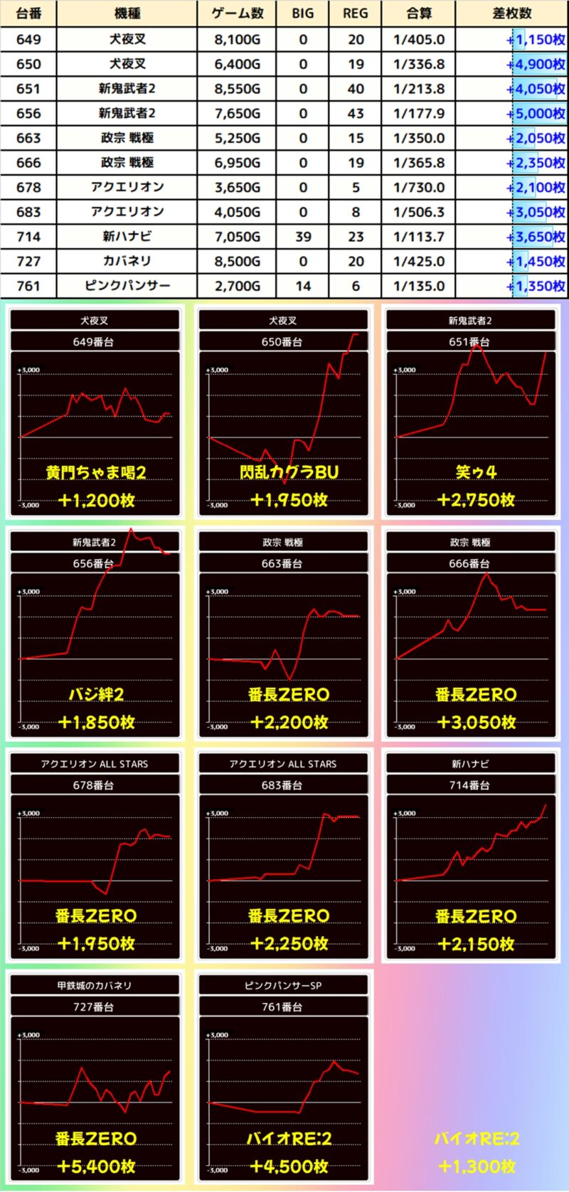 上記の各まとめに入ってこなかった平均差枚+1000枚以上の良台をドド~~ンとお届け!